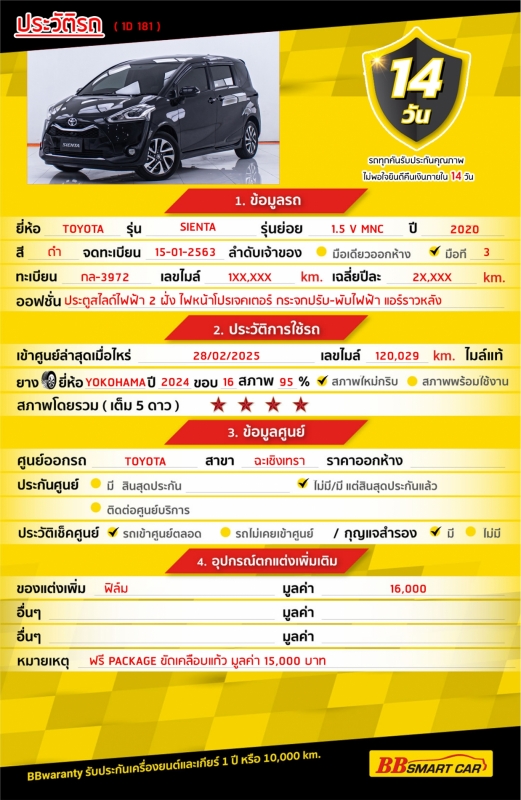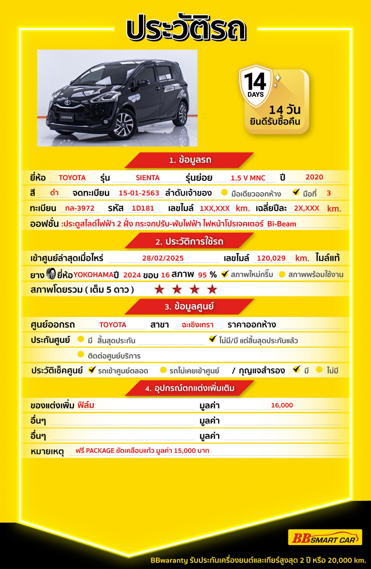 - BB Care Plus รับประกันหลังการขาย สูงสุด 2 ปี หรือ 20,000 km.