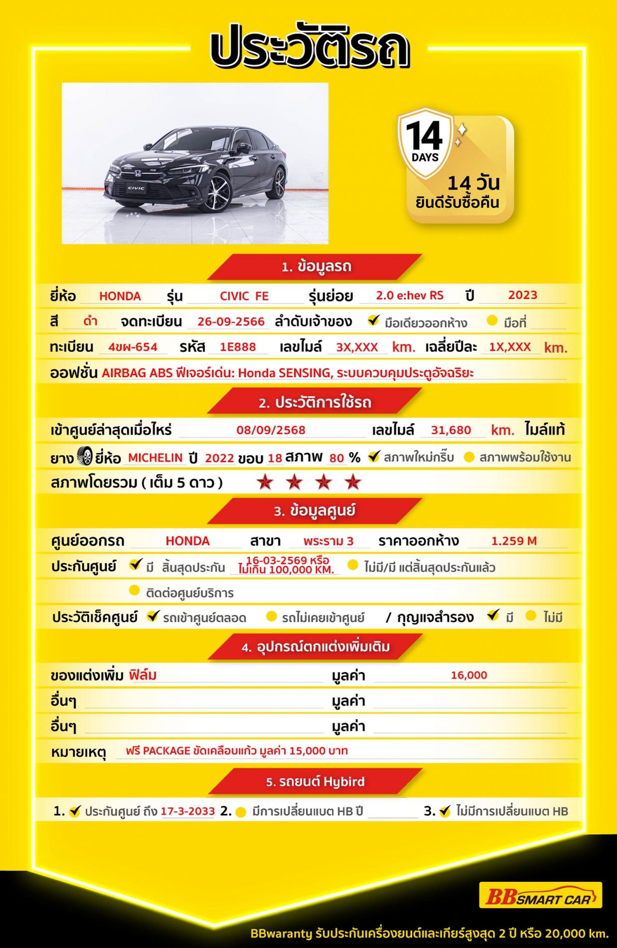 - BB Care Plus รับประกันหลังการขาย สูงสุด 2 ปี หรือ 20,000 km.
