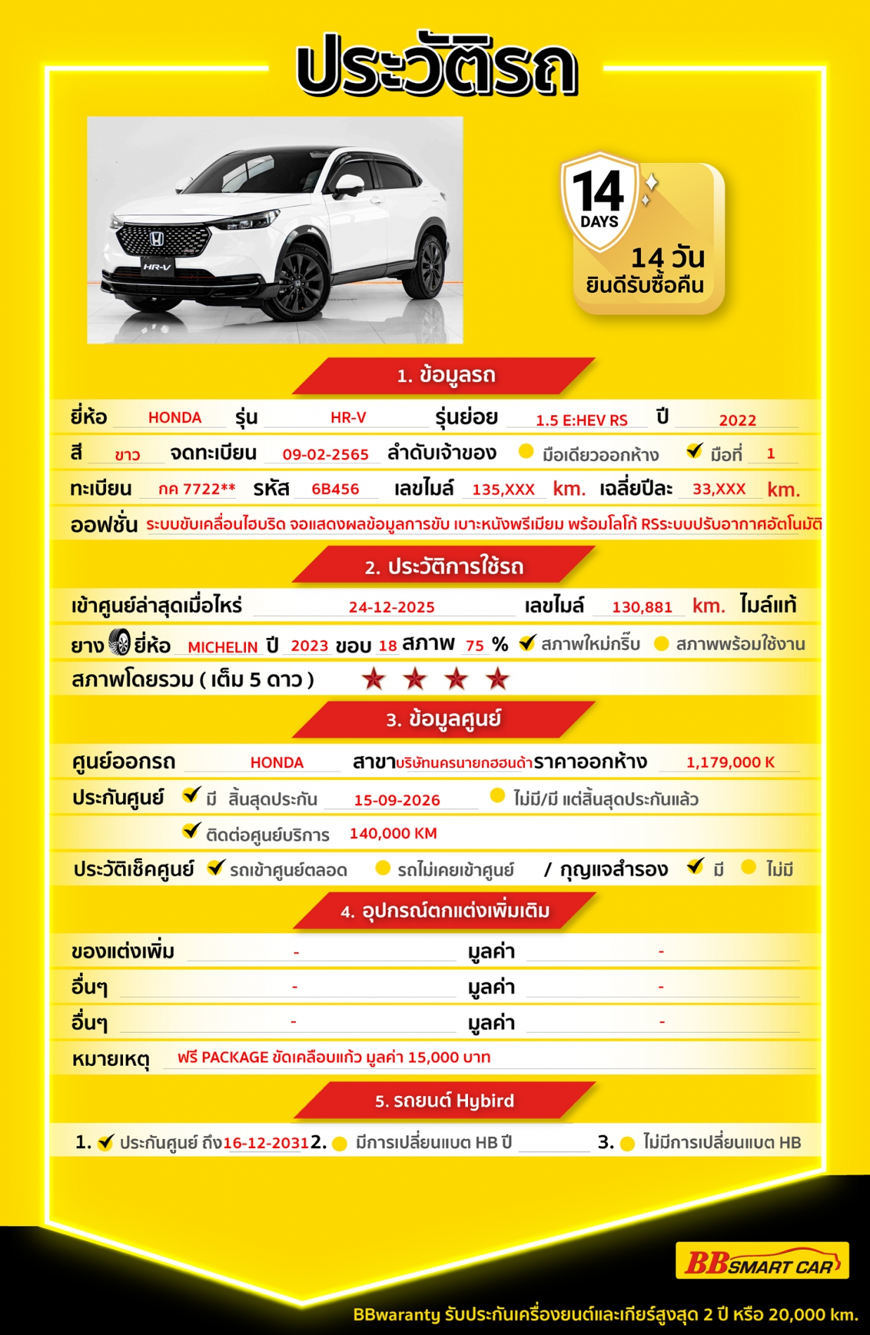 BB Care Plus รับประกันหลังการขาย สูงสุด 2 ปี หรือ 20,000 km.