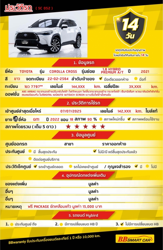BB Care Plus รับประกันหลังการขาย สูงสุด 2 ปี หรือ 20,000 km.