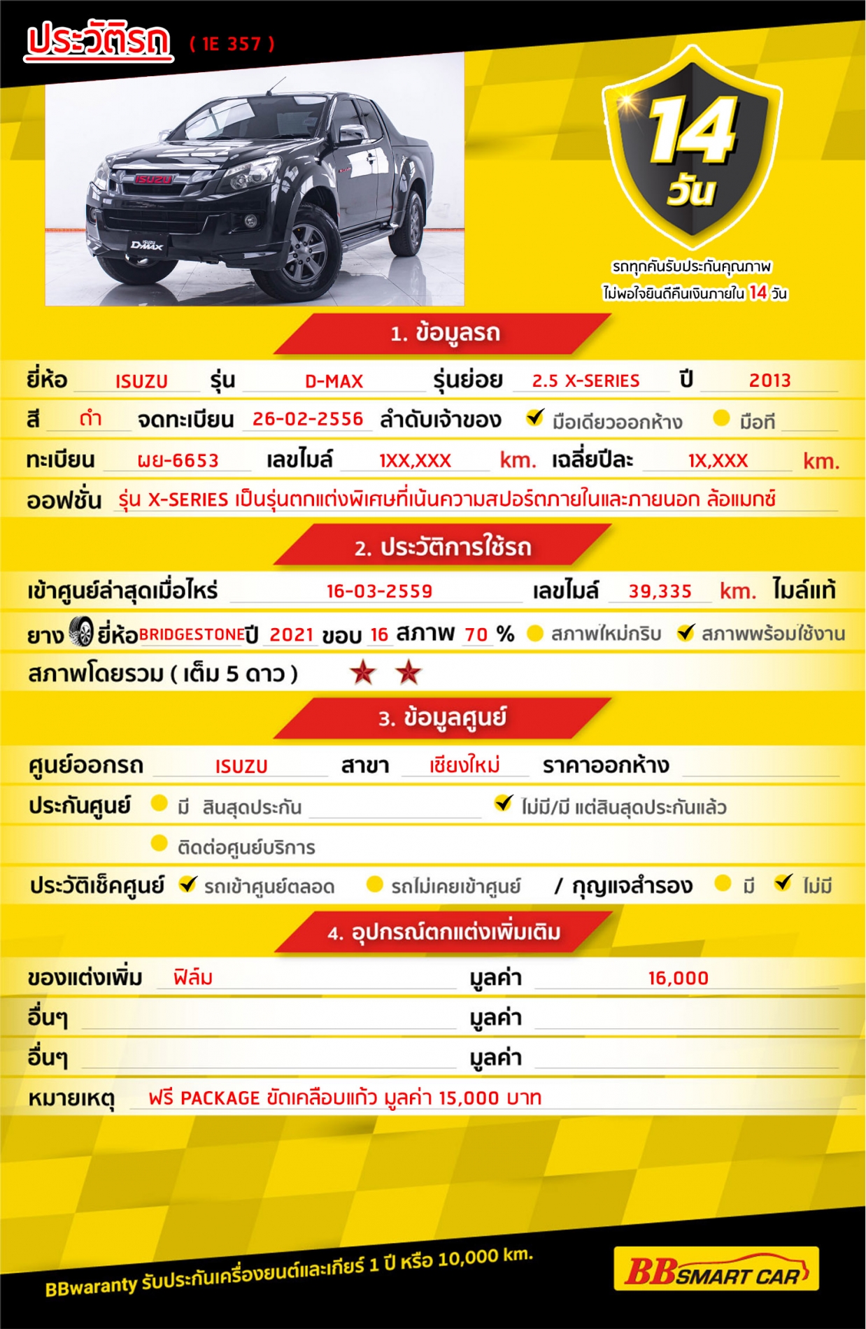 - BB Care Plus รับประกันหลังการขาย สูงสุด 2 ปี หรือ 20,000 km.