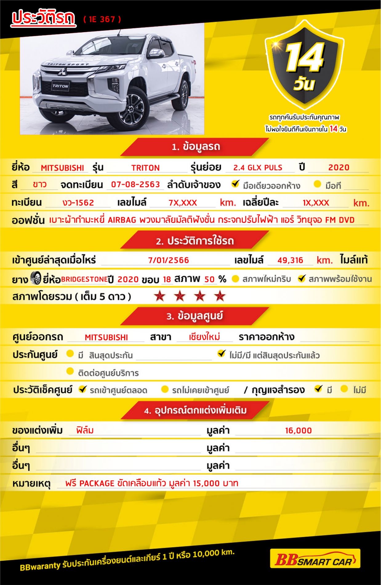 รหัสรถ 1E367 ราคา 459,000 บาท ผ่อนเพียง 7,852 บาท