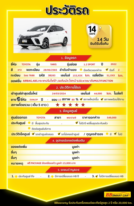 - BB Care Plus รับประกันหลังการขาย สูงสุด 2 ปี หรือ 20,000 km.