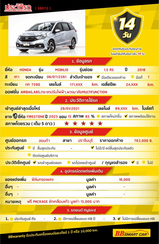 - BB Care Plus รับประกันหลังการขาย สูงสุด 2 ปี หรือ 20,000 km.