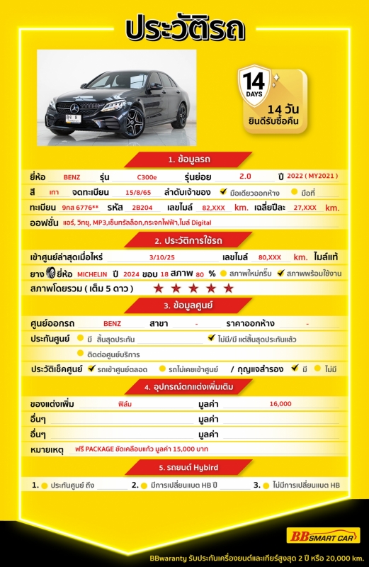 BB Care Plus รับประกันหลังการขาย สูงสุด 2 ปี หรือ 20,000 km.