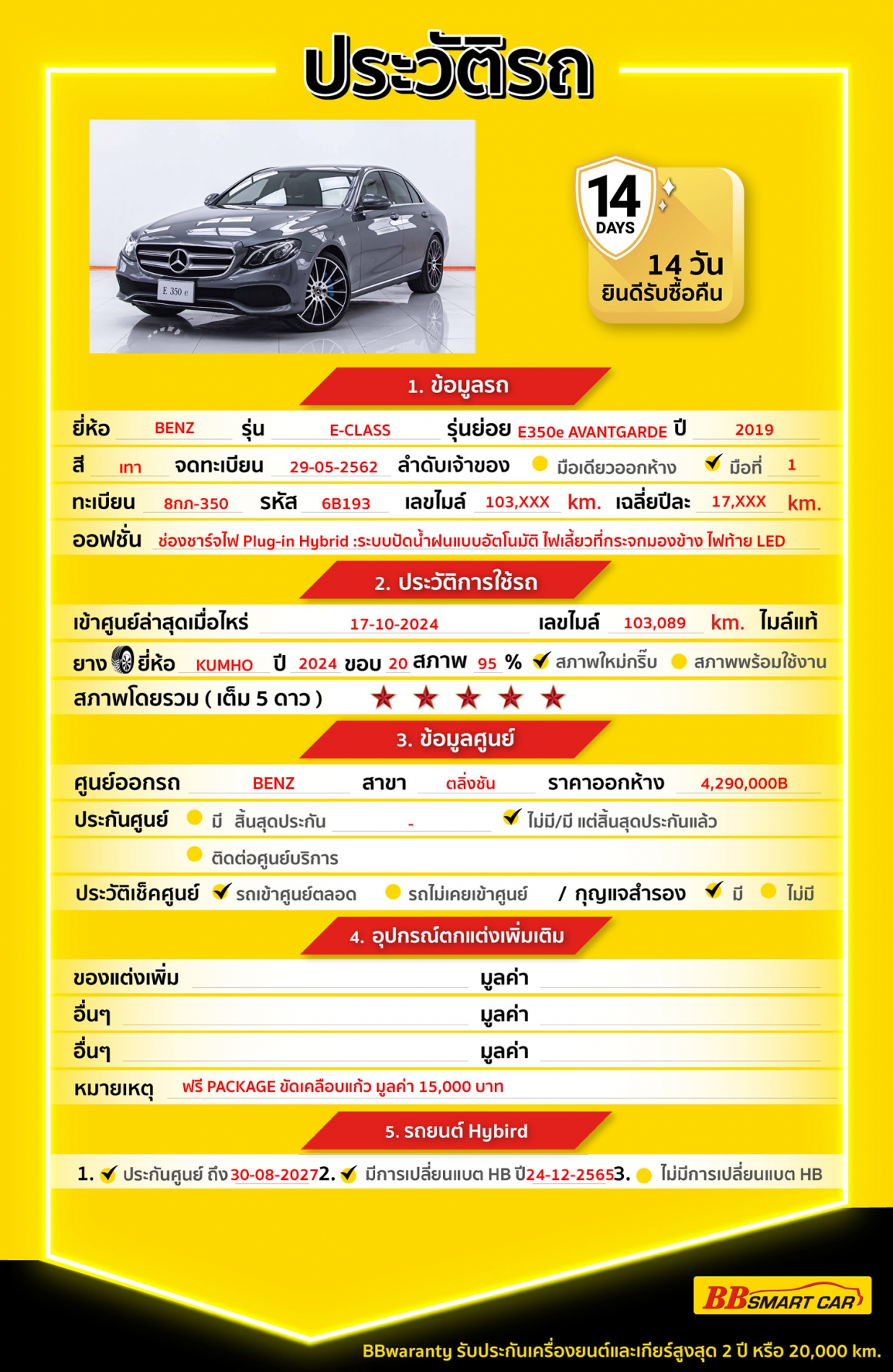Car Hightlight รถสวยๆ วันนี้ขอแนะนำ MERCEDES-BENZ E-CLASS E350e 2.0 AVANTGARDE W213 2019