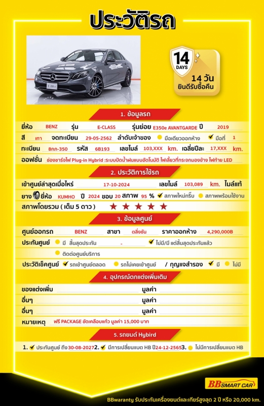 การรับประกันหลังการขาย BB Care Plus สูงสุด 2 ปี หรือ 20,000 km. ด้วยช่างที่ผ่านการอบรมจากศูนย์ชั้นนำของประเทศ