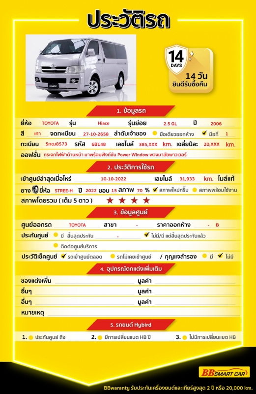 BBsmartcar service : ฟรีค่าแรงซ่อมบำรุง 3 เดือน หรือ 5,000 Km.