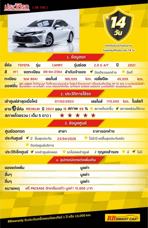 BB Care Plus รับประกันหลังการขาย สูงสุด 2 ปี หรือ 20,000 km.