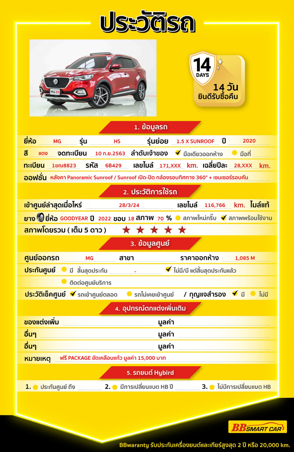 การรับประกันหลังการขาย BB Care Plus สูงสุด 2 ปี หรือ 20,000 km. ด้วยช่างที่ผ่านการอบรมจากศูนย์ชั้นนำของประเทศ