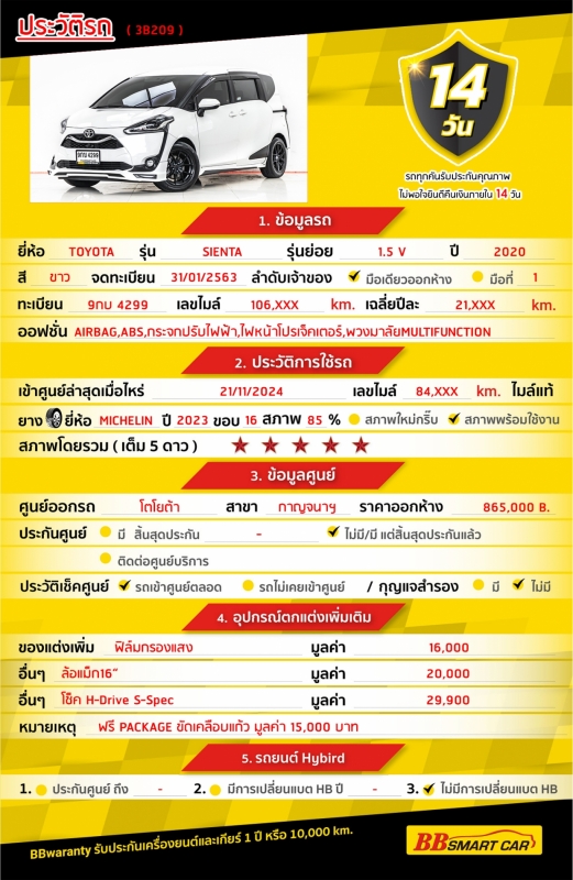 - การรับประกันหลังการขาย BBwarranty ดูแลเครื่องยนต์และเกียร์ นาน 2 ปี หรือ 20,000 กิโลเมตร ด้วยช่างที่ผ่านการอบรมจากศูนย์ชั้นนำของประเทศ