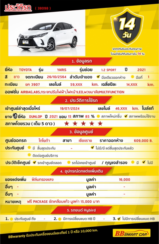 - BB Care Plus รับประกันหลังการขาย สูงสุด 2 ปี หรือ 20,000 km.